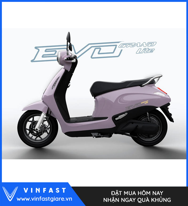 VinFast Evo Grand Lite là mẫu xe máy điện phổ thông hướng tới nhu cầu đi lại hằng ngày trong đô thị, nổi bật với tốc độ tối đa 48 km/h, quãng đường di chuyển tới 198 km/lần sạc khi lắp thêm pin phụ, cốp rộng 35 lít và giá bán 18.900.000 đồng. Trên trang chính thức, VinFast ghi rõ mức giá này đã bao gồm VAT, 1 pin và 1 bộ sạc.